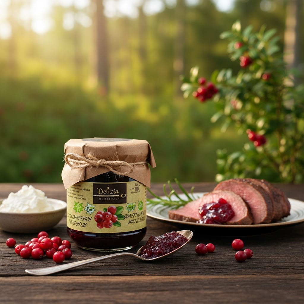 Ingredienti: mirtilli rossi* (60%), zucchero*, acido citrico*, pectina*