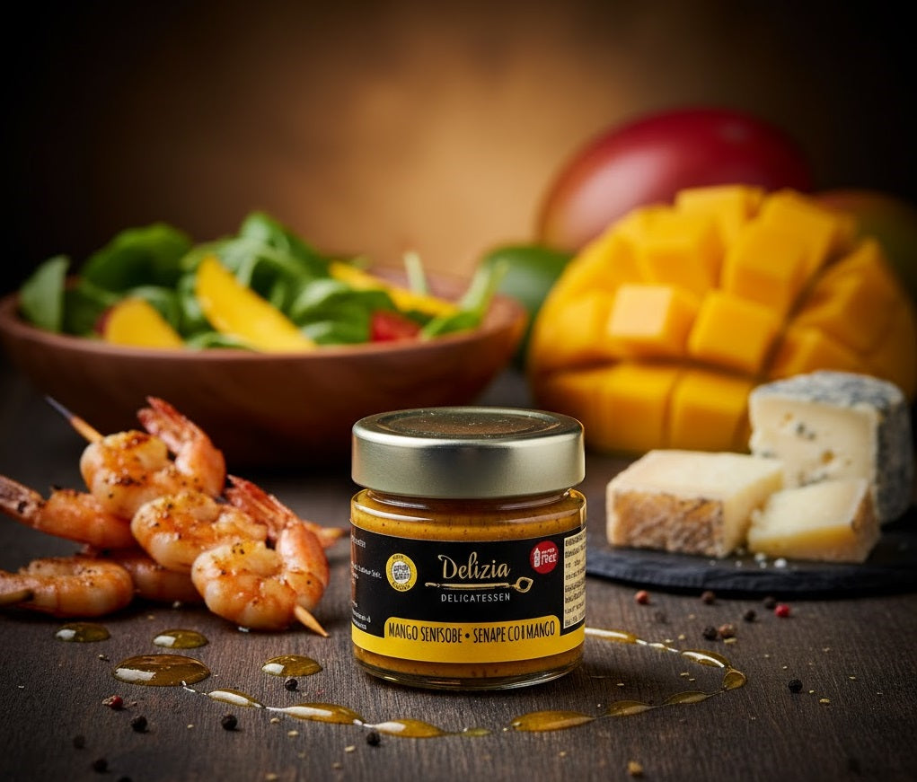 Il sapore dolciastro del mango si amalgama alla perfezione con il gusto netto e deciso della senape