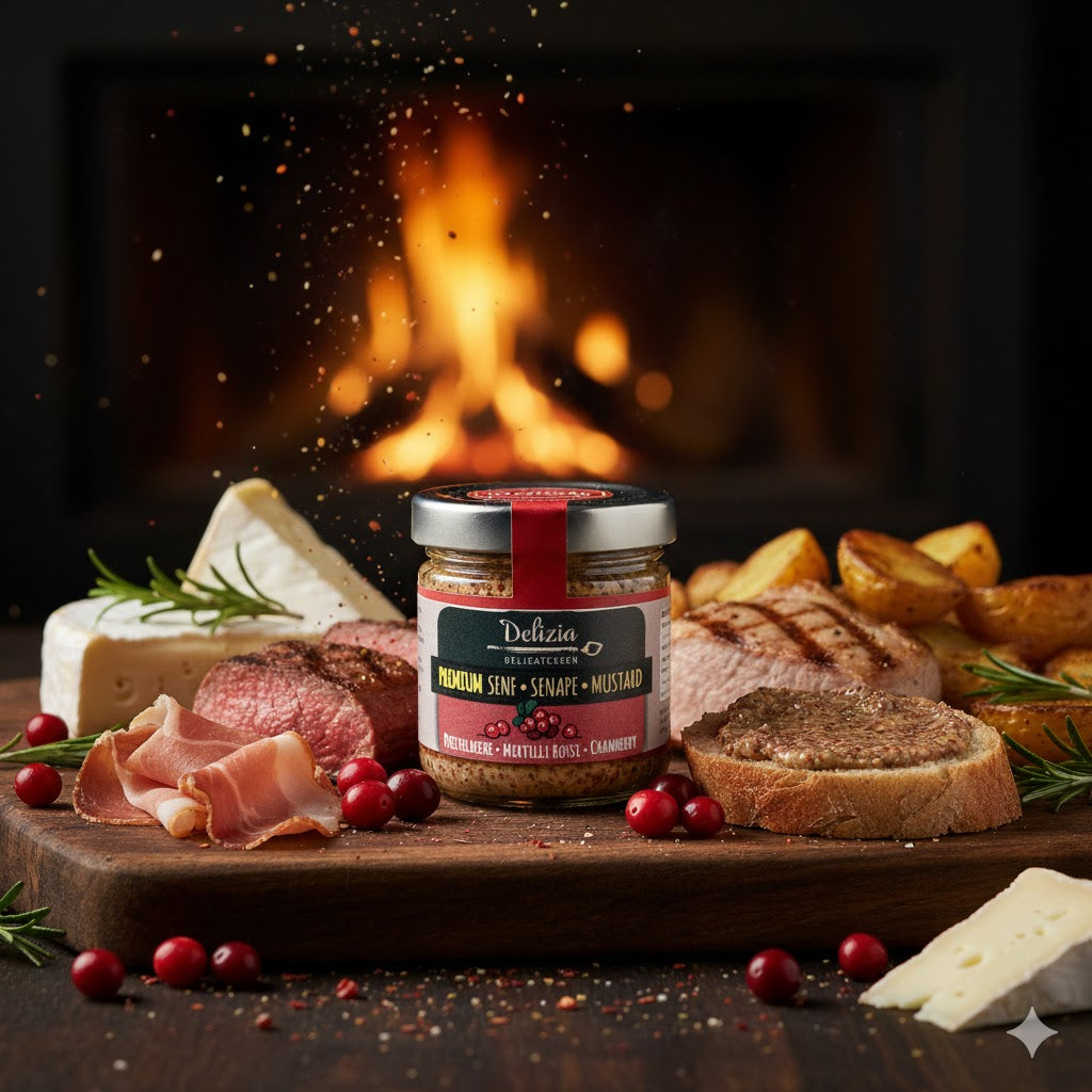 La dolcezza della frutta è conferita dall'aroma dei mirtilli rossi. Grazie al suo sapore dolce e fruttato, la nostra senape con i mirtilli rossi si sposa perfettamente con la selvaggina, speck, le carni rosse e bianche, patate al forno. E' particolarmente gradita da coloro che amano spalmare la senape sul pane o la utilizzano come accompagnamento ai formaggi